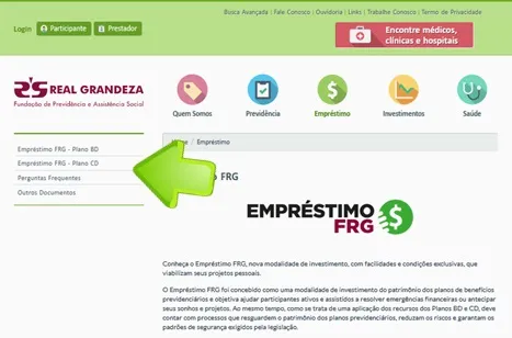 prazos e procedimentos, entre outras informações. Selecione a opção Empréstimo FRG - Plano BD ou Empréstimo