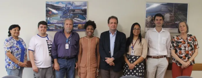 Da esquerda para a direita: Isaura Brandão (Após-Furnas); Rafael Quintella (ASEF); Cláutenis Costa Leite (ASEN); Valéria Paim (FRG); Sérgio Wilson (Diretor-Presidente da FRG); Giselle Flores (FRG); Fábio Pizzo (Furnas) e Helena Elizabeth Kulnig (Furnas)